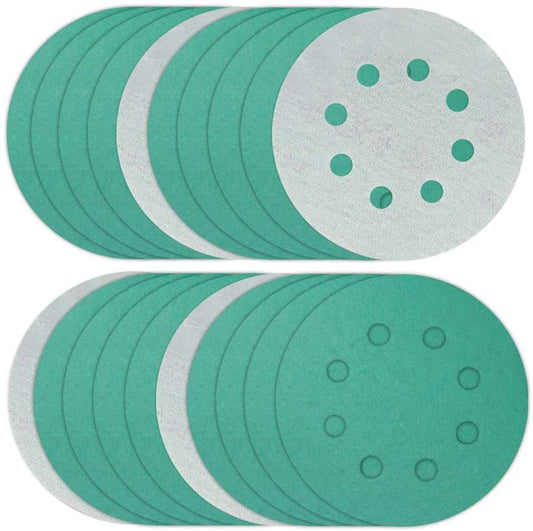 100PCS 5in Sanding Discs Hook and Loop 8 Holes Sandpaper Assorted Grit 40-800