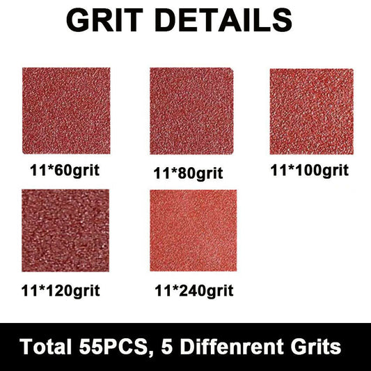 55 PCS Triangle Sanding Pads 3-1/8" Hook and Loop Sandpaper Assorted Grits