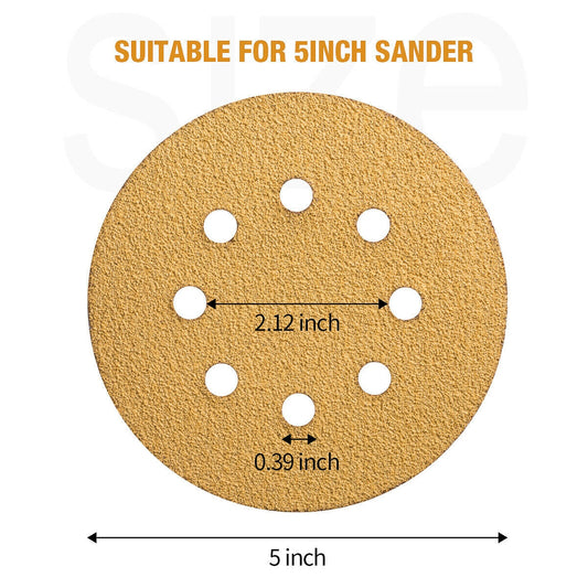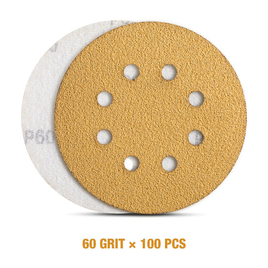 100PCS 5inch Gold Sanding Discs Hook and Loop 8 Holes 60 Grit Sander Sandpaper