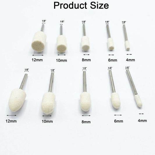 20PCS Wool Felt Mandrel Mounted Grinding Polishing Bit for Rotary Tool 1/8"Shank